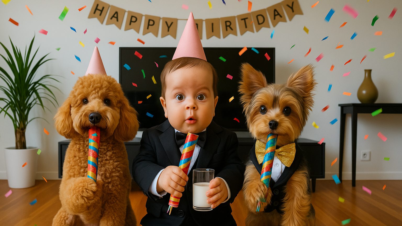 A heartfelt video message for a woman from her pets and baby.